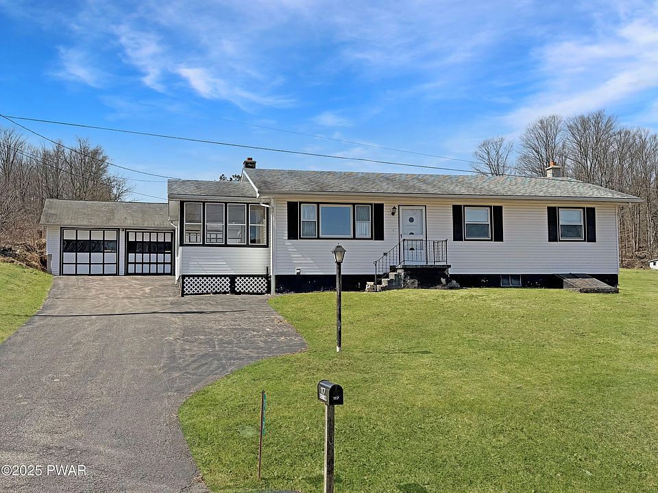 Back on the market due to buyer's financing! Escape to the charm of country living with this inviting ranch-style home in Waymart! Including 2 lots for a total of 7.2 scenic acres with beautiful countryside views, this 3-bedroom, 1-bath home offers endless possibilities. Enjoy cozy gatherings in the spacious living room with a large picture window, or savor meals in the eat-in kitchen and dining room. Beneath the carpeting, wood floors are waiting to shine. The full unfinished lower level provides ample storage or the potential for additional living space. The 3-car garage needs some TLC but is perfect for vehicles, hobbies, or equipment. Relax on the enclosed porch and appreciate the peaceful setting. Situated on 7+ acres, there's plenty of room for animals, ATV riding and recreation! Located in the Western Wayne School District, with easy access to the Casey Highway & Interstate 81, this home is perfect for commuters seeking a peaceful retreat.