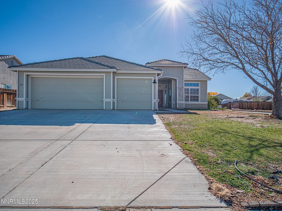 Welcome to 117 Elkhorn Drive — a beautifully updated home in Dayton's desirable Riverpark community with no HOA! This 3 bedroom plus office/den sits on a corner-lot property offers RV access, an oversized garage, and a spacious backyard complete with a storage shed and swing set included with the sale. Step inside to discover stylish LVP flooring throughout, updated LED lighting, and an inviting great room with a cozy gas fireplace and abundant natural light. The kitchen features stainless steel appliances and modern finishes, while the luxurious main suite bathroom impresses with tile floors, quartz vanity, and a large custom walk-in shower. Additional highlights include a water softener, open-concept layout, and a prime location just 20 minutes to Carson City and under an hour to Reno and Lake Tahoe. This move-in ready home blends comfort, convenience, and style — perfect for those seeking space, function, and value in a peaceful neighborhood
