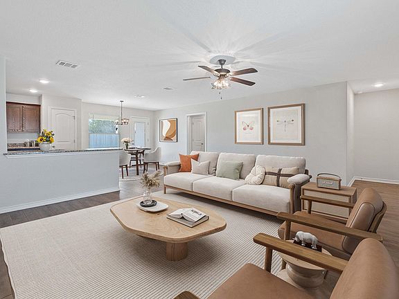 PRICED TO SELL! Welcome to this lovely single-story home on a large, level lot within minutes of downtown Burnet. The back yard is huge, just waiting for your imagination to create your perfect space. The open floor plan, complete with 3 bedrooms and 2 full baths is ready to move in. Natural wood cabinets with soft-close hinges compliment leather-feel granite throughout the home. Both bathrooms include floor to ceiling tile. The primary suite bath includes a spacious walk-in shower. Freshly painted, and the carpet in all bedrooms has just been replaced. Washer, Dryer and Refrigerator all convey. This house is also USDA Eligible! Add in Seller Concessions to help lower your interest rate! What more can you ask for? Take advantage of this FANTASTIC INVESTMENT OPPORTUNITY today!