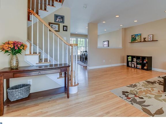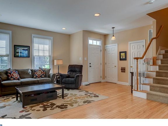 Pristine and Upgraded Brick Front Townhome is ready for its new owners! Welcome to this spacious home that is nicely situated across from North Park in the sought after Town Center of Robbinsville! Hardwood floors are found on both levels. The desirable and versatile open floor plan and 9 foot ceilings on the first floor add elegance. Formal living room flows nicely into the formal dining area currently being used as a play area. Large family room currently being used as the formal dining room features a wall of windows that overlooks the well designed back yard. Upgraded kitchen offers 42 cabinets, solid surface counter tops, pantry and a breakfast area. French door from breakfast area leads to the paver patio and newer landscaped beds and vegetable garden. All three bedrooms are on the second floor including the master bedroom with its own full upgraded bath and walk in closet. Another full bath on this level services the other two bedrooms. Not to be missed is the beautifully finished basement with wide plank flooring and beverage center with granite counter top. Convenient second floor laundry, ceiling fans, recessed lights, vinyl fence 2014, air conditioning 2010, hot water heater 2017, no association fees, and more! All this within a short walk to two community lakes, playground, and the Town Center shops and eateries. A few minutes drive to major roads such as Rt. 130, 195, NJ TPKE, 295, and Hamilton Train Station for an easier commute. Excellent Robbinsville schools complete this special offering!
