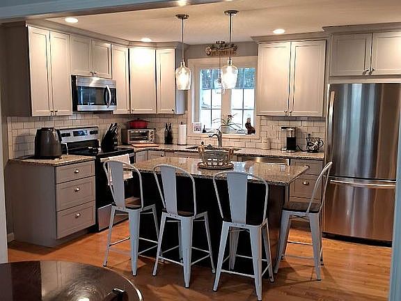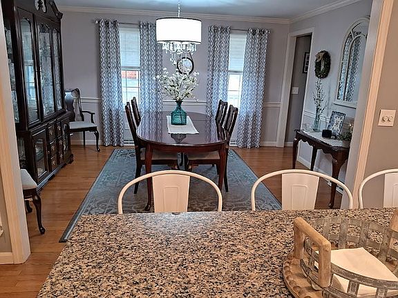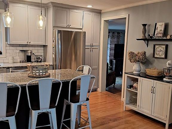 Newly remodeled kitchen plenty of cabinets and center island  with granite countertops,stainless steel appliances kitchen is open to dining for large family gatherings. 2 full baths, first floor laundry, nice hardwood floors throughout the house, brand new windows 2 years ago. 12'x 22' sun room with sliders to concrete patio with gazebo, fenced yard, and finished basement. 4 years old HVAC system.