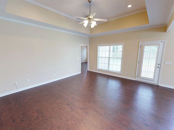 Open floor plan with spacious living, dining area and kitchen! All appliances remain, including the refrigerator. No carpet in this home! Living areas and bedrooms have been updated with low-maintenance Luxury Vinyl Plank flooring! Master Suite sits at at the back of the home with Master Bath that includes long vanity, separate tub and shower and walk-in closet. The back porch is large and covered, overlooking the fenced backyard! HOA community with neighborhood lake, sidewalks and common areas!