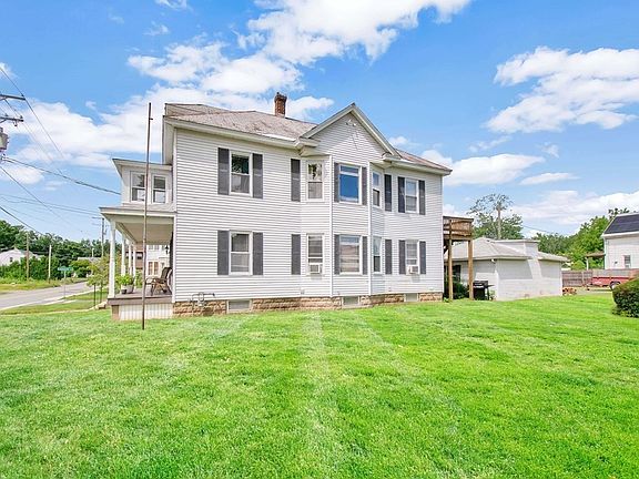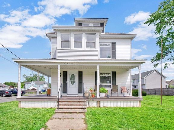 Opportunity abounds with this attractive 2 family Colonial on a large corner lot zoned Neighborhood Business. The property consists of 3 Lots and has a detached 2 car garage and generous off-street parking. Currently a two family, previously a single family. There are 2 units, each consisting of 4 rooms and a full bath. 1st floor "dining room" easily converted to 2nd bedroom. The 2nd floor kitchen, bath, rear hall and deck were tastefully remodeled in 2006 APO. The home maintains its classic character with original wood trim and leaded glass accent windows. Vinyl replacement windows There are enclosed porches on both the first and second floor. Tenants have separate utilities and their own laundry/storage in the shared unfinished basement. Original main hallway is a common area. While there may be many options for maximizing the utility and value of this property, the buyer is responsible for their own due diligence and confirming intended use with the appropriate authorities.