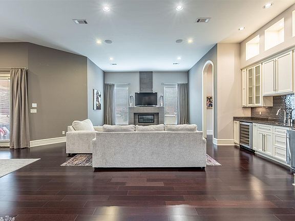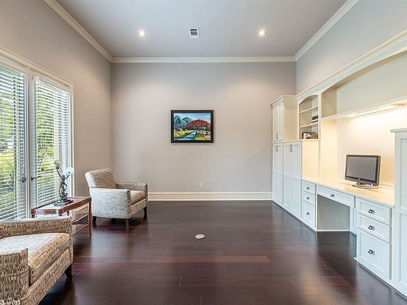 This is a custom 4 Bed, 3 Full Baths, 2 Half Baths, plus an office, and Theatre - built by the great Bill Parkinson gated in The Oaks of Chenal. Through impressive iron French doors, you're welcomed to your spacious foyer with tall ceilings into a beautiful open plan with the large living that features a gas fire hearth, a wet bar with the custom recess lit cabinetry w/ the built-in wine cooler and premium sonic-style ice maker. Pass the oversized tray ceiling dining to find your chef's kitchen...
