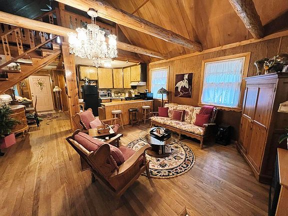 Absolutely charming unique property! with 1.4 acres of privacy this 3 German style cottages are a fantastic get away 5 minutes from Evans . The main home feature a vaulted ceiling with original beam from the property, all hardwoods , open kitchen great room concept with gas propane stove, dining room and balcony , and full bath. upstairs a open loft with a king bed and another balcony. the second building is a guest cottage with full bath, and the 3rd. cottage a large laundry and storage. sold furnished as is Cash or Conventional loan only Private Remarks: Cash or Conventional Buyers ONLY sold as is