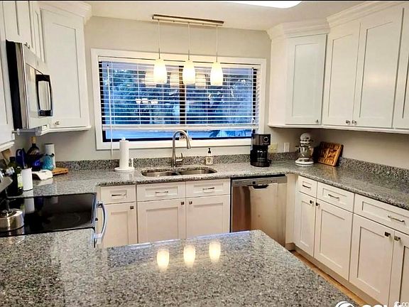 This renovated corner unit, nestled in the coveted Regime III of The Belle Isle Yacht Club offers views of Johnstone Lake and Winyah Bay. This 3-bedroom, 2.5-bathroom waterfront villa has been meticulously updated to provide a modern yet cozy ambiance. Upon entering, you're greeted by a newly installed kitchen adorned with granite countertops, sleek stainless steel appliances, and modern cabinets. Hardwood floors extend through the kitchen and dining area and the villa has been freshly painted as well. Carolina room and master bedroom are the perfect place to relax and enjoy stunning unobstructed sunrise views and Mother Nature's beauty. Belle Isle is blessed with beautiful live oaks and the azaleas are in full bloom. As part of The Belle Isle Yacht Club community, residents have access to an an array of amenities including a marina, two in-ground pools, tennis courts, two clubhouses, and a private beach house nestled in Pawleys Island. Additionally, recent upgrades such as durable Concrete Siding (Hardie Board) and fresh paint on all units, along with re-roofing, ensure the longevity of appeal of the complex. This villa presents a move-in-ready dream home opportunity. Embrace the vibrant, amenity-rich community and immerse yourself in the allure of coastal living at its finest.