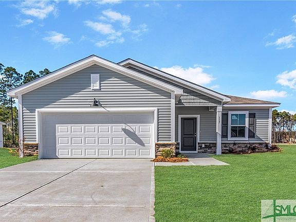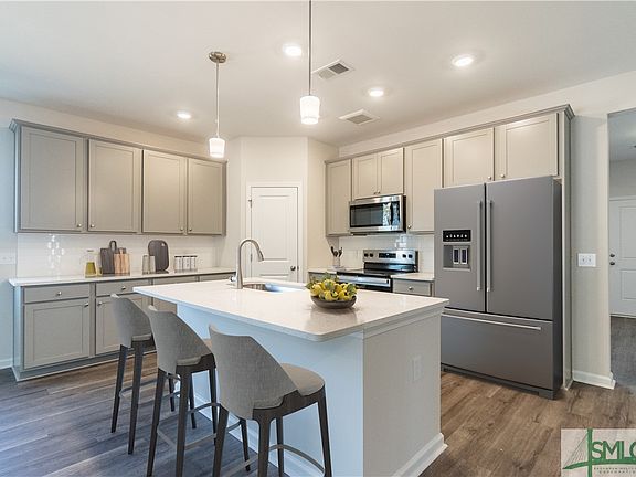 Step into a home where style meets functionality—this beautifully designed 2,283-square-foot residence offers three bedrooms, three full baths, and a versatile bonus room that easily converts into a 4th bedroom. The luxurious main-floor primary suite provides a private retreat, while the chef-inspired kitchen features 42" cabinets, quartz countertops, and luxury vinyl plank flooring for a perfect balance of elegance and practicality. A large covered patio extends your living area outdoors, creating an ideal space to relax or entertain while overlooking serene walking trails and ponds. The upstairs bonus room, complete with a full bath, adds flexibility, making it ideal for guests or entertainment. Conveniently located just minutes from Pooler’s shopping, dining, and downtown, this move-in-ready gem is ready to welcome you home!