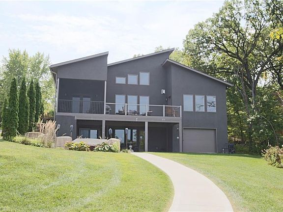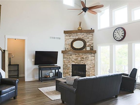 Welcome to this breathtaking Fully Furnished 3 bedroom, 3 full bath, 2 half bath lakefront property, spanning over 3,300 sq ft with unparalleled views and amenities. The main kitchen features quartz countertops, black matte stainless steel appliances and plentiful cabinet space. The living room is the perfect spot to relax around the stone fireplace and views of the lake. In addition to the 3 bedrooms, you also have a loft bonus room perfect for home office, media room or additional guest area. The finished basement has an additional kitchen with granite countertops, a second laundry room and workshop. The 3 car garage is oversized heated and cooled and also has access to the basement. The outdoor space has a large deck with screened area offering incredible lake views, a firepit, an outdoor shower for convenience, exterior lighting to add both ambiance and security to the property in addition to this home being equipped with a modern alarm system. Keep your lawn lush with the sprinkler system and a shed for additional storage. Take a short walk to the newer concrete dock where you will find 2- well boat docks, 2 lifts, jet-ski port, surround sound Wi-Fi speakers, and a swim platform with private beach for endless water fun. You will have easy access to the lake with a gentle walk to the swim area. This home is perfect for lake lovers and those who seek both luxury and functionality in their living space. Don't miss this opportunity to own your dream lakefront home!