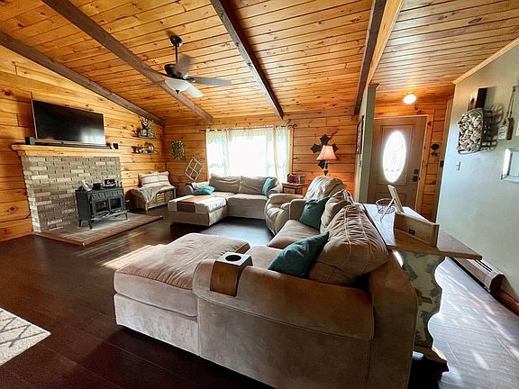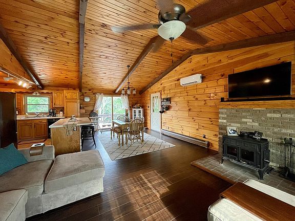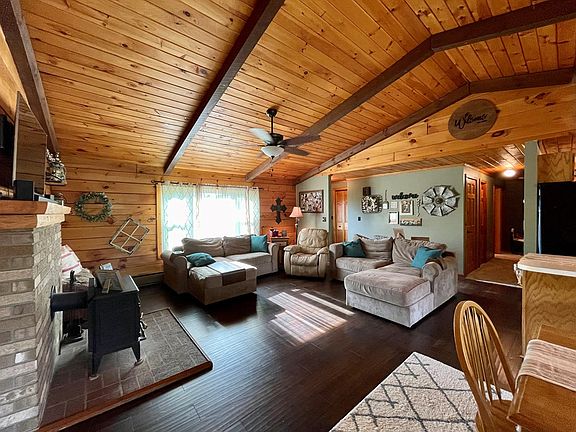 This beautifully maintained log ranch home is the perfect place to come home to. At the end of a cul-de-sac on a very quiet road just minutes from downtown Wellsboro. Experience the peace, quiet and tranquility of the country on your 10 acres, watching the wildlife from your back deck or multi purpose patio. 3 bedrooms/2/5 baths, gorgeous woodwork throughout, generous sized owner's suite with double closets, two wood stoves or natural gas hot water baseboard for your choice of heating preference. Open living space makes for great entertaining, and a full basement just waiting to be finished off for twice the living space! This home is one you're going to love! Make it yours before someone else does!