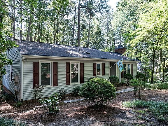 Charming home tucked away on a Kildaire Farms cul de sac. Incredibly well-loved and maintained! Fabulous gourmet kitchen with loads of Kraftmaid cabinets, granite counters, a large island, soft-close drawers, wine storage, tile backsplash, pull-out trash, bar seating, and work desk. Gorgeous “real” hardwood floors throughout! All new (expensive!) windows! Updated baths with new vanities and flooring. Updated lighting and hardware. Roof 2018. Lovely landscaping….no grass to mow. Stone retaining walls, gravel & brick pathways, specimen plants. Huge deck overlooking totally private rear yard backing to trees and creek bed. All vinyl siding and soffits for easy care. Washer, dryer & refrigerator included. Easy walk to Kildaire Farms Swim & Rec Club…best bargain in town for pool, fitness, etc with no initiation fee!