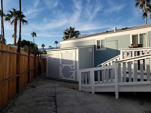 Enjoy Palm Springs in this 2019, 1 Bedroom, 1 Bath Manufactured home located in the popular Warm Springs area of Palm Springs.Located in Ramon Mobile Park, an active 55+ community offering residences many amenities including an oversized heated swimming pool, spa, gym, clubhouse, shuffleboard and much more. Open floor plan with kitchen, living room & dining area. Newer air conditioning unit, and a newer evaporative cooler. The bedroom is large enough for king sized bed, bathroom has a walk-in shower. All windows are double paned. There is a handicap access to entrance of mobile, with a new shed for storage or a shop.Land rent is $700 per month for one year, water and trash are included in the land lease. All potential buyers to be approved by park manager to purchase.Sewer is $18.31 per month, metered gas and electricity are added to the monthly land lease. Ramon Park application fee is $35. Information deemed reliable, but not guaranteed. Buyer to perform investigations including lot size and square footage.