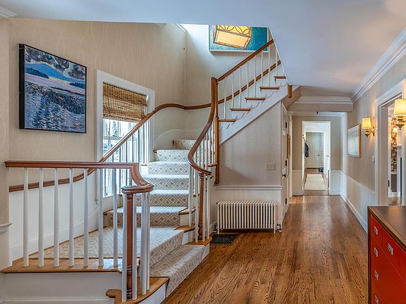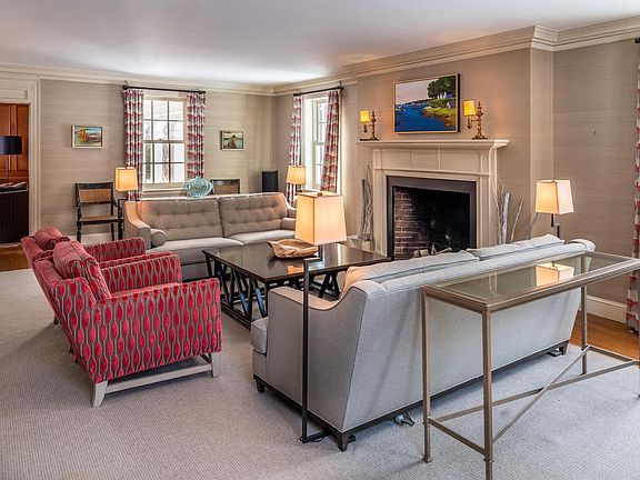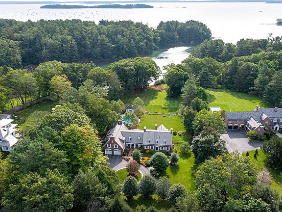 Extending from its entrance on stonewall-lined Foreside Road to the calm inner reaches of Casco Bay, this Falmouth Foreside estate represents one of Falmouth's very few historic waterfront properties. With its brick facade and slate roof, the home was designed in the Cape Cod style in 1926, with modern updates and additions bringing the home effortlessly into the 21st century. A gunite pool and its casually elegant pool house overlooks the sweeping lawn, with Mussel Cove and the islands of Casco Bay in the distance. Inside the residence, you are greeted by a gracious foyer, with wood floors extending throughout the first floor of the home and much of the second floor. Beautifully proportioned rooms round out the first floor, with extensive renovations and an addition completed in 2004. Upstairs, 4 ensuite bedrooms provide ample space, with the primary suite and its double french doors perfectly sited to capture the water views. An upstairs bonus room makes an excellent billiards room or home gym. With 6 fireplaces, first rate mechanical systems, a whole house generator, and world class original construction, this home is ready to enter its second century of life in grand style.