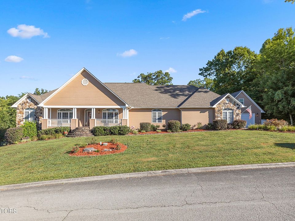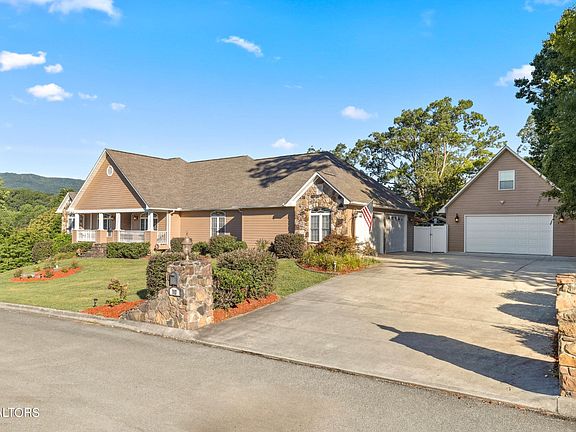 Gorgeous custom built home on 3/4 acre lot located in Paradise Cove-- a Norris Lake community! Quiet country setting with views of the Cumberland Mountains, this home offers a highly desirable one level floor plan with split bedroom design, vaulted ceilings, two gas fireplaces, hardwood floors, and four car garage. Recent updates include new roof, new HVAC, tankless water heater, fresh interior paint, all new appliances including induction cooktop, vinyl fence in the backyard, extended decking, 2 gazebos, and the 24x24 detached garage with 12x24 loft. The deck is sure to impress with a covered sitting area, open space for entertainment, and the hot tub. Master suite is well appointed with full suite including jetted soaker tub, dual sink vanity, and walk-in closet. Original garage is oversized measuring approx 24x32. Half mile to the boat ramp! Convenient to Cove Lake State Park, Twin Cove Resort & Marina, Seqouyah Marina, and only 30 minutes to Knoxville! County taxes only!