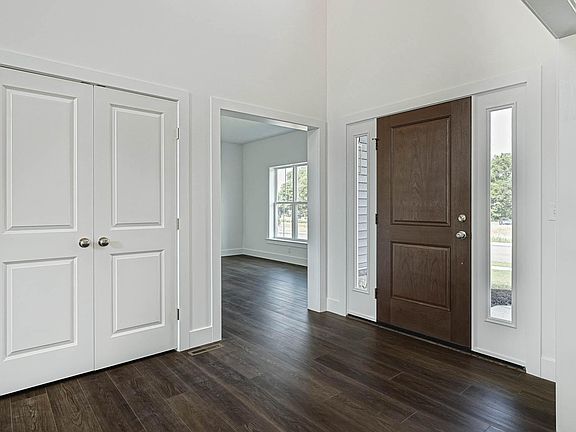 This 2-story home includes a first floor owner's suite, a welcoming front porch, and a 2-car, side-load garage with entry into the laundry room. The thoughtfully designed, open floor plan features 9’ ceilings on the first floor and a 2-story foyer extending to the great room. Stylish vinyl plank flooring flows throughout the main living areas. The study to the front of the home is adjacent to the formal dining room featuring a decorative tray ceiling. The kitchen includes quartz countertops with tile backsplash, stainless steel appliances, and large center island. Next to the kitchen is a sunny breakfast area that provides access to a large patio, and a 2-story great room that features a cozy gas fireplace with full-height stone surround and a box beam mantel. Tucked quietly to the back of the home, a first-floor owner’s suite boasts an expansive closet and private bathroom with a 5’ tile shower, two vanities and a freestanding tub. The 3 additional bedrooms and full bathroom are located on the second floor.