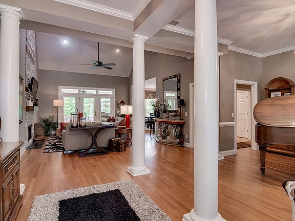 Immaculate home with owners suite,two guest bedrooms office and formal dining downstairs. The kitchen offers granite counters, updated cabinets, stainless aplliances and a pantry. Beautiful hardwood floors and plantation shutters, the great room has an updated and designer inspired fireplace and opens onto the screened porch. The Owners suite has a walk-in shower, soaking tub, granite vanity, and walk-in closet. There is a 4th bedroom, full bath, bonus room upstairs with built-ins, kitchenette with granite & wet bar, and two built-in wine coolers.. There is a large walk in attic with foam insulation. Beautifully landscaped lot overlooking the #2 fairway of the Nicklaus course, directly accross from Duck Pond Park. Space for everyone and storage galore!