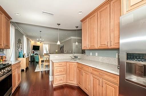 Town house style three bedroom condo with one and a half baths. Open floor plan living room, kitchen and dining room on the first floor, all three bedrooms together on the second floor. 10+ foot high ceilings finished with crown moldings. Large Pello windows allowing lots of natural light to stream throughout the unit. Brazilian hardwood floors, granite counter top, stainless steel appliances. Washer/dryer in unit, fireplaced living room, heated bathroom floor, marble in the laundry room/half bath - the list just goes on and on. Top of the line craftsmanship & luxurious upgrades throughout this ready for occupancy unit. Hurry won't last!
