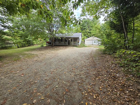 Delightful 2-bedroom ranch with open floor plan, wood floors, farmer's porch and full walk-out basement offers endless possibilities, workshop, home gym, storage area, or potential for additional living space. Best of all is back property includes over 300' frontage on the Nezinscot River where one can canoe, kayak or toss a fishing pole! All one floor living and a detached 2-car garage.