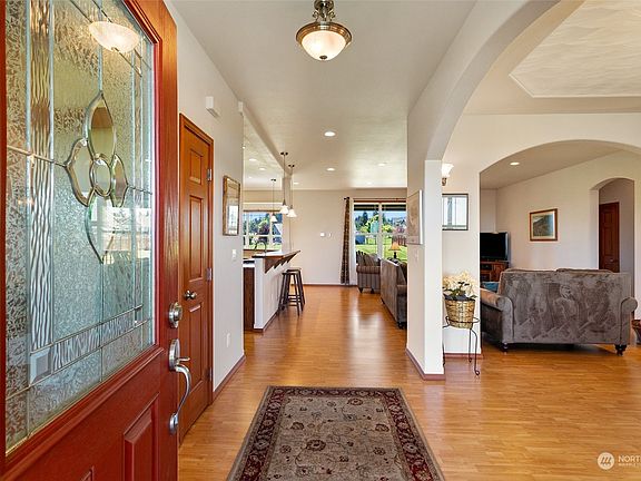 Don't miss this stunning Chehalis charmer. Imagine having your morning coffee on this beautiful wrap-around deck overlooking the mountains and valley. The main floor features a large eat-in kitchen w/ a pantry, formal dining room, a living room, den/office with French doors, the primary bedroom has vaulted ceilings, a 5 piece bath with a jacuzzi tub & double headed shower, and a walk-in closet, 2 addl bedrooms, full bath, laundry room, and plenty of storage. The upper level has a large family room with a ton of natural light and views of the valley and Olympics, 3/4 bath, and a ton of storage. The HUGE garage will easily fit 3 cars or more. RV parking. Spacious .91 acre lot has a nice covered deck and plenty of room for entertaining.