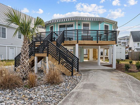 Don't miss your chance to own one of the few Octagon homes left on the island! This unique bungalow, which was recently featured on HGTV, sits on a beautifully maintained lot on the North End of Carolina Beach. This is a truly unique property with fantastic curb appeal that really makes it stand out and gives it a very unique appeal as a potential short term rental investment property. Tucked away on Georgia avenue, this home is steps away from a public beach access and the North End Pier, but far enough from the noise and traffic, offering a peaceful & relaxing setting.There is plenty of parking with two separate driveways, tons of outdoor living space, newly updated outdoor patio, outdoor shower and plenty of storage for your beach toys with the shed that was added and conveys with the property. No worries about HOA or shared space, this single home property is low maintenance and has been upgraded with smart home technology, window treatments and a custom hurricane proof awning to keep you dry and shaded while hanging on the front porch. For a full list of upgrades, please see the included features list provided. This is one you must see in person to appreciate!