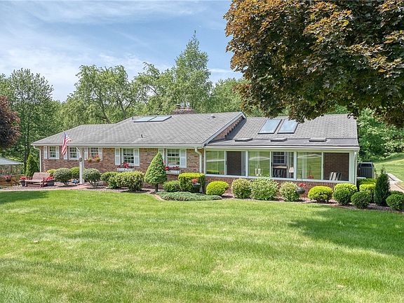 Cherished and beautifully maintained by the same family for nearly 5 decades, this solid brick ranch blends timeless design with thoughtful updates. A vaulted entry with skylights welcomes you into the bright, open spaces. The kitchen offers abundant storage and counter space, connecting to the sun porch and dining room featuring an elegant built-in buffet. The large primary suite includes a jacuzzi room and private sun porch access. Three additional bedrooms offer double closets. The living room features a gas fireplace and bay window overlooking the lush backyard. A second gas fireplace anchors the spacious lower-level family room, opening to a level backyard and patio for easy indoor-outdoor living. A new hardscaped stairwell with lighting leads to the side yard. A rare 4-car garage, EV charger, whole-house generator, tankless hot water, synthetic slate roof with 50-year life, and LeafGuard gutters complete this special home. Truly one of a kind!