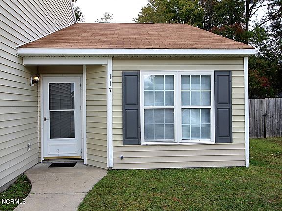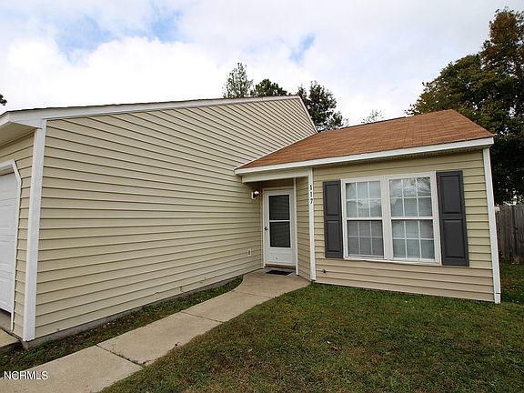 Great 2 bedroom, 2 bath Duplex only minutes from Cherry Point Marine Base. Nice open floor plan with vaulted ceilings and fireplace in living area with French door leading out onto the rear patio. No Carpet! Laminate flooring installed less than a year ago throughout home. Perfect home for someone wanting to down sized or the first-time home buyer. One car garage and private back yard. Roof under 5 years old. Minutes to entertainment and shopping.