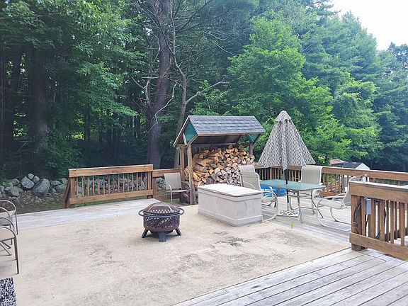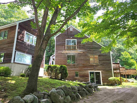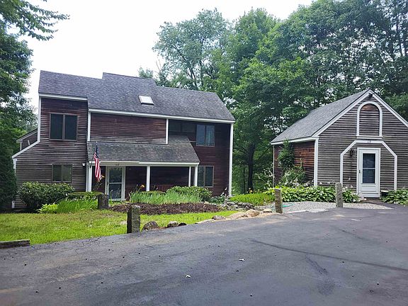 Welcome to 117 Goss Drive where this contemporary saltbox post & beam "builders home" was custom built to flow with the land. Outside, a picturesque open elevated lot with views of distant hills and open space with southern exposure. Inside this home you will find unique custom woodwork not often found. Pristine hardwood floors throughout and exposed beams accented by the vaulted ceiling beyond the second floor. The main level is wide open great room style living, granite trimmed fireplace, with multiple sliders to the deck and patio that overlooks the large private yard. Second floor bedrooms and full Jack&Jill bathroom. Finished lower level with kitchen/living/ laundry room, full bath and bedroom with walkout entry. This low traffic neighborhood and idyllic home can do it all within walking distance to downtown Henniker. Including… a detached post & beam guest house (currently single occupancy rented month to month with separate utilities. Collect rent or have your office separate from the house. This home is a must see. Also see mls # 5005276 for SF listing with ADU