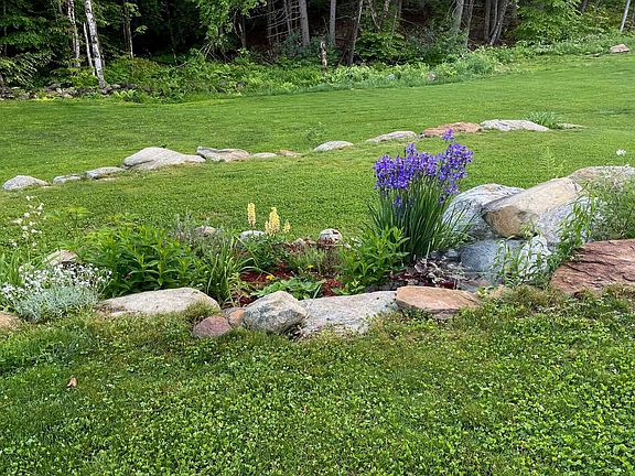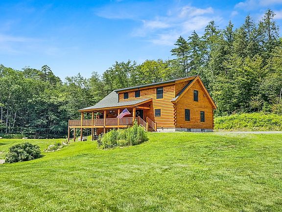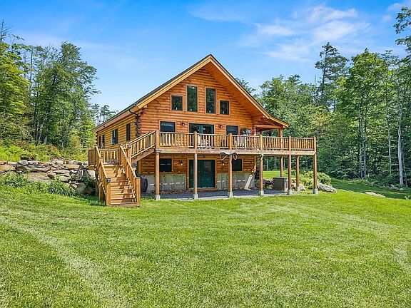 This stunning log home on 22.1 private acres offers luxury, comfort, and the beauty of quintessential Vermont. Built in 2018, you will find decorative accents and choice finishes, blending rustic charm with modern conveniences. The indoor and outdoor living spaces flow naturally offering inviting spaces to gather and entertain. Step out onto the spacious, wrap-around deck overlooking a trout pond and perennial gardens. The kitchen is a chef’s dream with a spacious island, soft-close cabinets, under-cabinet lighting, gorgeous quartz and soapstone counters and lots of storage including a pantry for additional space. Equipped with black stainless steel appliances and a 5-burner gas stove, enjoy creating culinary delights here. The spacious primary bedroom suite includes a bathroom with exquisite granite and tile finishes including a tall glass and tile walk-in shower. A half bath with custom-built wine barrel sink and a laundry area with large capacity washer and dryer complete the main level. Upstairs, you will discover a large bedroom with vaulted ceilings and deep closets, a full bath and an open loft, a perfect spot to kick back and relax. The lower level features an office and bedroom off a spacious foyer and potential for a future game room and bathroom. Property is equipped with 14kW whole house generator and gutters with leaf guards and rain barrel. Not far to major ski areas and VAST. Delayed showings until July 15. Open house July 15, 10am-2pm and July 16, 11am-3pm.