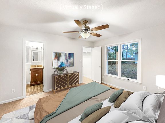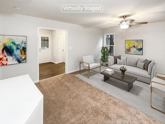 This recently renovated home offers a natural color palette throughout, perfect for creating a peaceful atmosphere. The primary bathroom is equipped with good under sink storage, and the master bedroom has a walk in closet. The flexible living space includes other rooms that can be used to fit your needs. The backyard features a sitting area, perfect for relaxing and enjoying the outdoors. This home has been upgraded with a new roof, fresh interior paint, new flooring throughout, and new appliances. Come and see this beautiful home and all it has to offer! This home has been virtually staged to illustrate its potential.