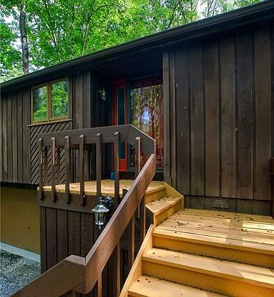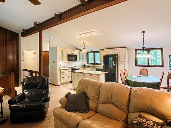 Pristine Privacy! This home is situated so perfectly behind a forest of trees on a lush green lot- need to look really close to even see a house it there! This Architecturally compelling contemporary style ranch style home boasts vaulted ceilings, open floor plan, and a finished basement. The living room ceilings soar and a feature fireplace wall provides the focal point for the room. The dining area is open to the kitchen and living room. The kitchen features white cabinetry, granite counters, and a center island. Outdoor enjoyment is easily accomplished with a screen porch and extended deck overlooking the private backyard. There is plenty of finished space in the lower level for a game room and office/den. A large separate laundry room is also located on the lower level. Master Suite & living room both offer opening to walk right out into nature!