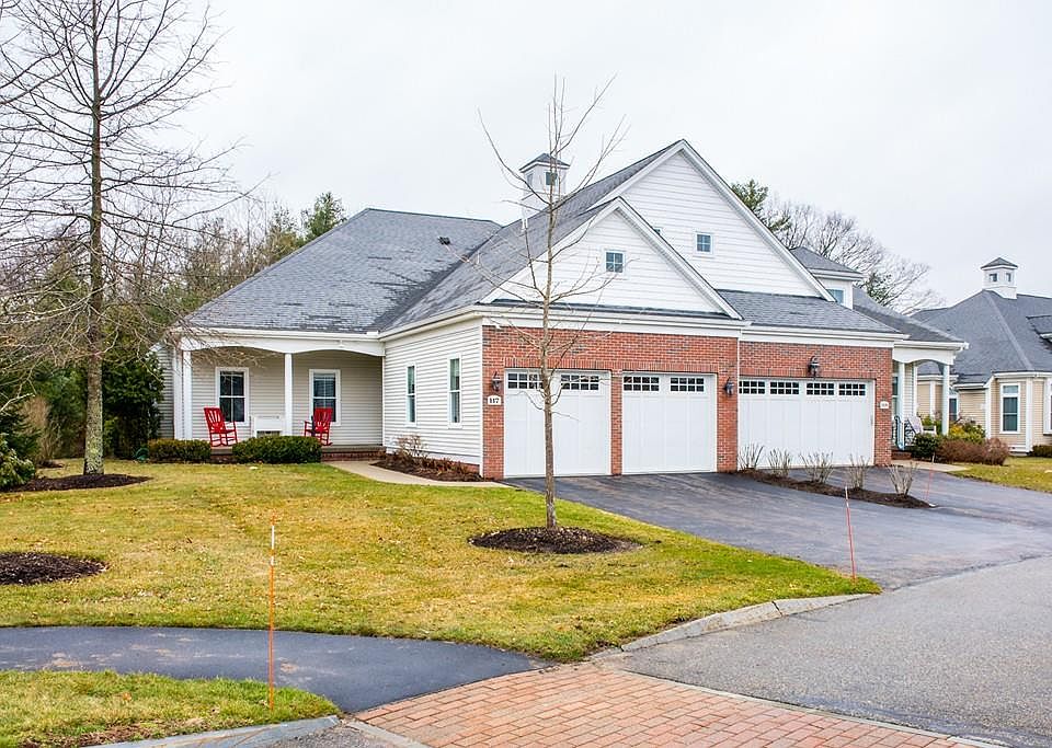 One of the largest homes within the desirable Village at River's Edge, and 'Active Adult' community (55+). The first floor has a large master suite with an elegant bath, a bright four-season sun room that overlooks a beautiful wooded setting. The kitchen has high quality Wolf and Sub-Zero appliances and a center island. The second floor contains another full bath and bedroom off of a loft/office overlooking the family room below. The second floor also contains a large attic/storage area. The finished basement was built by the developer, contains a full bath, walkout slider, and a kitchenette. The basement also includes two additional storage areas and stairs to the 2 car garage. Pets allowed up to 45 lbs.