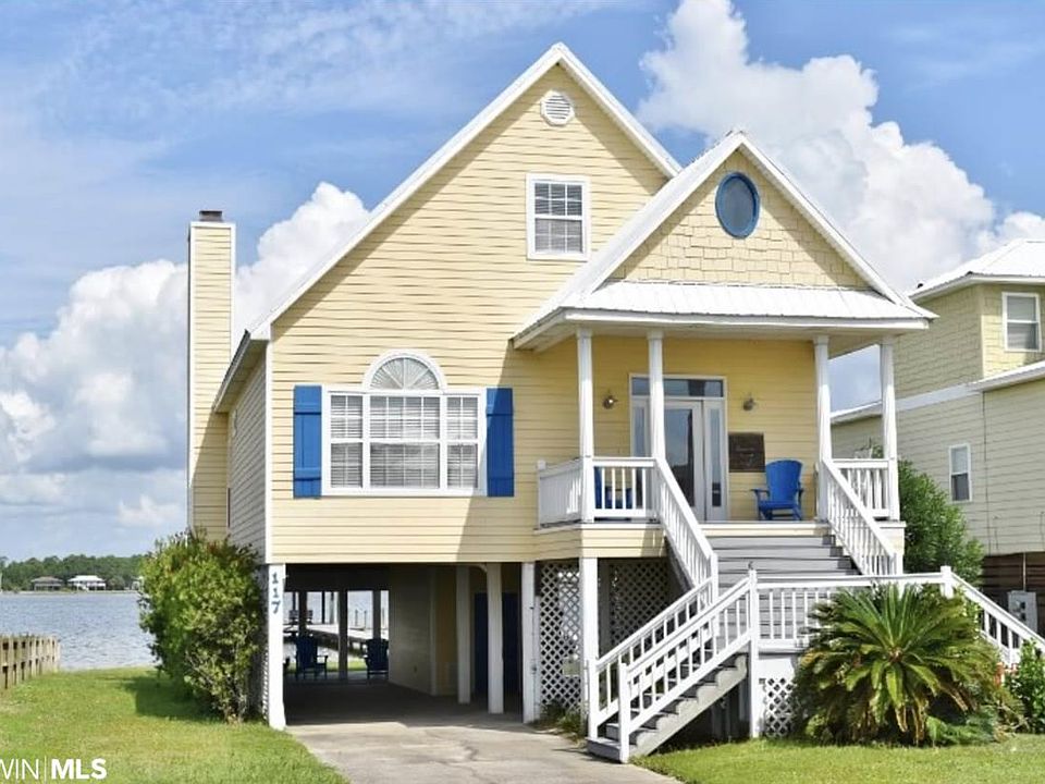 Aptly named Southern Breeze, this 5 bedroom/3 bath waterfront vacation home is bigger than it looks! With both Gulf beach access across the street (about 200 yds away) and a pier on Little Lagoon, you can fish or dock your small boat or jet skis right behind the house! There is a large shaded area under the house with chairs, a picnic table and a Weber grill. With a shared pier and boat slips, (3 neighborhood docks with slips to use on a first come-first serve basis) and a neighborhood boat launch just one street over, your boating adventures are always close at hand. The main floor has a king master with a twin daybed & trundle, as well as a 2nd queen bedroom, 2 full baths, living room, dining area & kitchen, laundry w/ big front-load washer & dryer. The living area opens to a wide lagoon-front porch with outdoor dining table, swing, chairs. Upstairs you'll find 3 more bedrooms (a queen, a pair of queens, and a double), a full bath & a family room w/ queen sleeper sofa. There is also a lagoon-front deck on this level. Southern Breeze is ideal for two families to share or just to give the kids some space of their own with the upstairs family room. Equipped with WIFI, and TVs in the living room, both main floor bedrooms, and the upstairs family room, entertainment is accessible & varied for all. Southern Breeze is located in West Beach at Lagoon Pass on a cul-de-sac across the street from the sugar-white beach of Gulf Shores and directly on Little Lagoon. This house has a pier behind the house and a neighborhood boat launch plus deeded beach access and beautiful sunset views--a great combination. Fish or crab from the back yard or a block over along Lagoon Pass where the Gulf enters Little Lagoon, a 9-mile salt water lagoon that is home to good fishing and many herons and pelicans. This section of West Beach is only houses so the beach is not as crowded, and you are only 3 miles from Hwy 59.