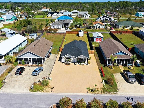 Bring your towel and fishing poles and make this beach bungalow your permanent vacation destination! Only a year and a half old, this 3 bed, 2 bath home has impact windows, cement fiber siding, and is in the elevated X flood zone. Comes furnished with basic kitchen items, washer and dryer, well and irrigation system, whole house Culligan softener/filtration system, 160sqft storage building and gutters. Walk to the beach access off of Pine St in less than 10 minutes or take a quick drive with your golf cart. St Joe Beach is dog friendly and there is plenty of quiet beach for fishing and relaxing along the undeveloped part to the South of Pine. This perfect location lets you walk or ride your golf cart to Shipwreck for dinner and a Gulf sunset at the local bar or, you can hop in the car and take a short trip to Mexico Beach or downtown Port St Joe in under 10. Want to stay in? Enjoy your private, fenced in backyard while soaking in the Hot Springs Salt System spa on the lanai. Lot is approximately 1/4 acre and has plenty of room for a pool. This small cul-de-sac has residents who work together to keep the neighborhood safe and in good condition. No HOA at this time/CCR's are recorded but not enforced. Short term rentals are allowed but there are only a few-most owners in here are full time residents. Square footage on Gulf PA site is incorrect and reported. Listed sqft taken from appraisal April 2023. Owner is FL Lic. Real Estate Agent.