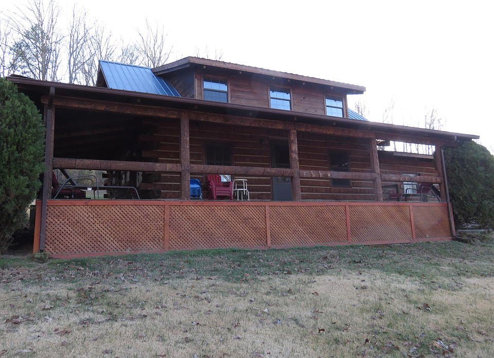 Folks: Note the PRICE REDUCTION! Wd floors on main. Lg. LR w/ stone FP. For. DR. Appliances stay. Wrapped porch. Log hm w/ metal roof. Attached gar and shed. 2nd bldg started on property. Would make a great artist studio, play house or wkshop. Mtn and pasture views, close to town. Buyer to verify SF. Sold As-Is, Where-Is. Seller makes no inspections or repairs.