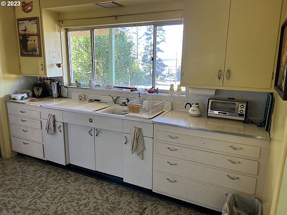 Fishermans Haven in Wheeler with views of the Nehalem Bay. Approximately 980 square feet of living space sitting over approximately 775 square feet of workshop and storage space. Upper level includes 2 beds, 1 bath, separate living and dining rooms, large kitchen with windows overlooking the Nehalem Bay, a office space and separate oversized laundry room that can also serve as a third bedroom. Upper deck runs the entire side of the house facing the bay and mountains for sitting outside and enjoying the views. The lower level has an additional full bathroom and workroom with utility sink. Large barn-style swinging doors open to accommodate storage of all your coastal toys including being suitable for parking a boat inside.