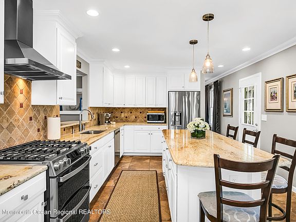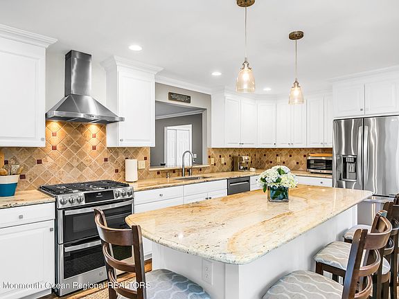 Charming Colonial home in picturesque Fair Haven! Inviting open layout w/ endless natural light pouring through oversized windows & gorgeous hardwood floors that flow throughout. Chef inspired kitchen equipped with top-of-the-line S.S. appliances, ample counter space & cust cabinetry that opens to spacious family room w/ FP & sep DR. Two story living room w/ cust built-ins, large tranquil primary suite w/ ensuite bath, & additional generously sized BR's w/ plenty of closet space. Lg basement w/ high ceilings perfect to finish as a playrm, gym, etc plus room for storage. Large backyard & deck great for outdoor entertaining. Located in a sought after neighborhood w/ sidewalks into heart of FH & downtown Red Bank - this home offers convenience w/ nearby schools, parks, shops & mins to Ferry!