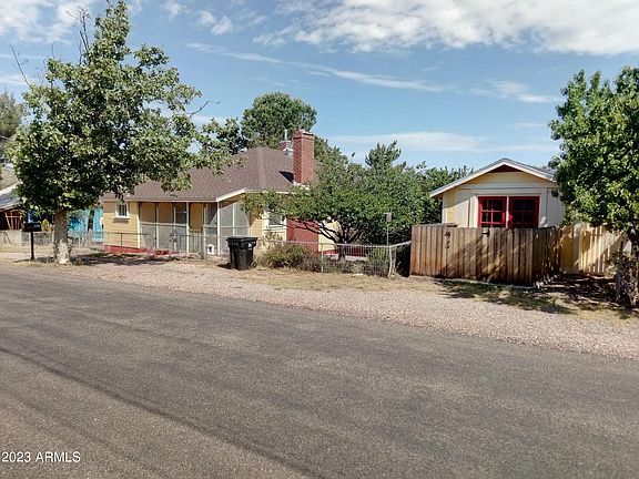 Large, fenced yard, that is two and a half lots. It has a tall pomegranate bush, an apricot tree, rosemary, mint, two Arizona willows, and other shrubs. The Parking is directly in front of the house and there are no steps to the house. The house faces the beautiful and silent open desert, which is county land.