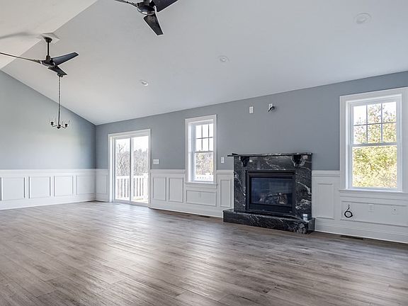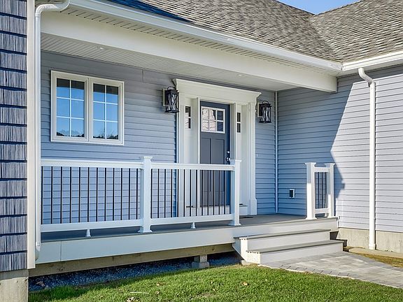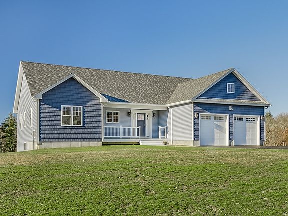 Beautiful newly constructed Executive ranch home filled with upgrades in a neighborhood setting. Stunning kitchen with two tone upgraded cabinetry , soft close features, granite counters , breakfast bar and dining area. Open concept blends dining and living room filled with natural light, cathedral ceilings, propane fireplace with marble surround accented with wainscoting and high end woodworking details thru most of the home and plank style flooring thru out. 3 spacious bedrooms including primary suite with private bath featuring porcelain tile, and custom tiled shower. Both bathrooms have double vanity sink with the same upgraded cabinetry as the kitchen , and granite tops . Outside space has welcoming farmers porch entrance , shaker accents and composite deck overlooking the 1 acre lot. All with Easy access to major route