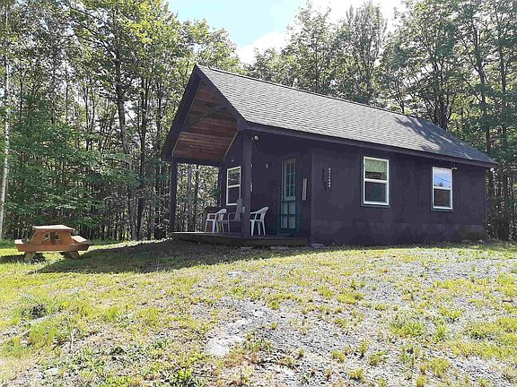 Were you disappointed to see this property go under contract? It back on the market & available. This change is not due to property issues, just buyer related. Tucked in so you see no one and no one sees you! Nice views from the property since the owners have opened up some of the land with some clearing. Smaller cottage constructed in 2012. Adorable inside finished with pine & high cathedral ceiling. Main living space has a nice open area with recent finished kitchen. One bedroom plus small loft for extra sleeping space and/or storage. Water is a catch rain cistern pumped inside. The bathroom is not complete but has toilet. Electricity and Netify internet. Covered porch is perfect for relaxing overlooking distant mountain views. New storage shed. Yard has good space for parking. Lots of pretty hardwood trees. A large area of conservation land abuts this property. You can snowmobile from here, hunt, or just enjoy the peacefulness.