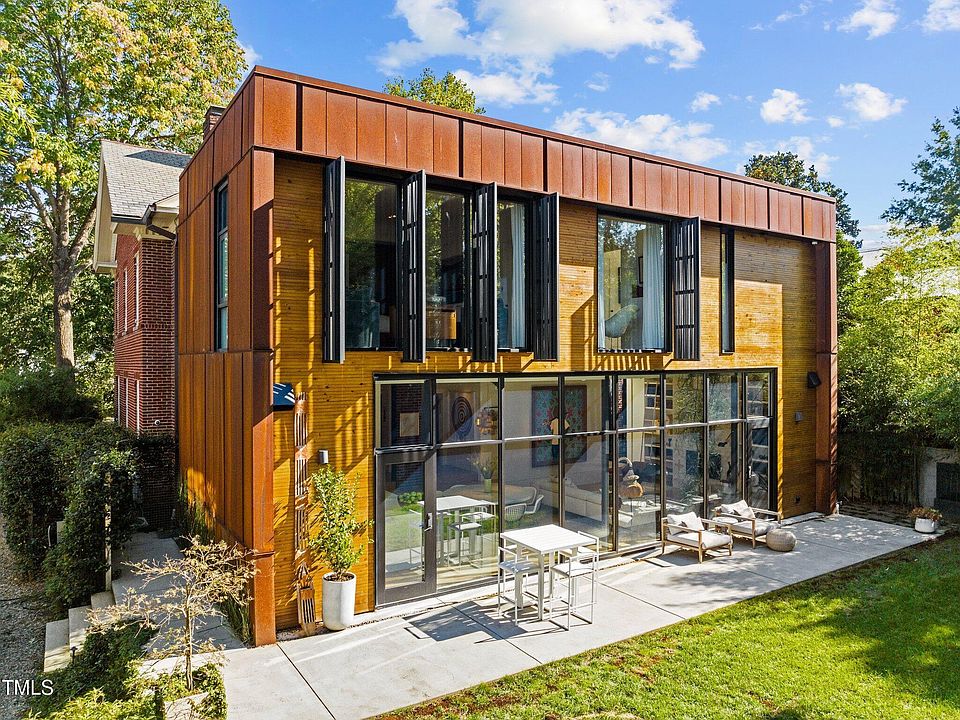 Located in Forest Park, one of Raleigh's most desirable inside-the-beltline neighborhoods, 117 Hillcrest Road blends historic grandeur with contemporary luxury. This important 110-year-old Georgian Revival, originally owned by Dr. John Reuer of NC State's College of Design, carries a distinguished architectural lineage. The current owners commissioned Katherine Hogan Architects to fully renovate the home and create a modern two-story expansion. The result is a seamless dialogue between past and present. The project won a coveted NC American Institute of Architects award in 2018. The original residence showcases grand, light-filled formal rooms with high 10' ceilings, ornate woodwork, and hardwood floors. A wide entry foyer and elegant staircase establish a sense of timeless sophistication. While the original portion of the home maintains a formal layout, the addition introduces an open, transparent space with floor-to-ceiling windows overlooking a private landscaped bamboo garden. A bright 2-story circulation hall links the two structures. The home spans three levels and is designed for both everyday living and large-scale entertaining. Highlights include a library with custom built-ins, a kitchen and scullery, and both formal and informal dining spaces. A chef's dream, the kitchens feature Thermador appliances, a professional gas range, three ovens, two refrigerators, two freezers, three dishwashers, and an ice maker. The lower level includes a media room, guest suite, and a wellness area with gym, steam shower, and sauna. Upstairs offers multiple bedrooms, including two separate primary suites. The modern wing's second level serves as a private owner's retreat with dressing room and spa-inspired bath. Additional storage is provided by a walk-in attic with potential to be finished as a possible fourth level for a sixth bedroom, office or rooftop deck. The property is fully equipped with state-of-the-art amenities: whole-house smart technology, integrated security system, active solar panels, recessed lighting, and a Tesla fast-charging station. The secured, gated driveway offers stacked parking and dual entry ways for convenience and privacy. High fencing surrounds the landscaped yard, creating a private oasis in the heart of the city. The location is unmatched—just minutes from downtown Raleigh, Cameron Village, shopping, dining, a YMCA and major highway arteries. 117 Hillcrest Road is more than a home—it is a rare architectural conversation, where historic grandeur meets modern design, offering an elegant canvas for living, entertaining, and celebrating Raleigh's design heritage.