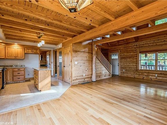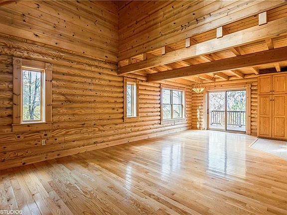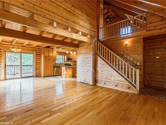Fabulous log home at the end of the cul-de- sac with picturesque views from the back deck! Cathedral ceilings and open main level floor plan.12 ft ceilings in the finished basement. Hand made Amish cabinets in the kitchen complimented by all new sleek stainless steel appliances and granite counter tops. Primary bedroom and 2nd bedroom on the upper level are very spacious. There is an additional loft upstairs that could be turned into a 3rd bedroom space.