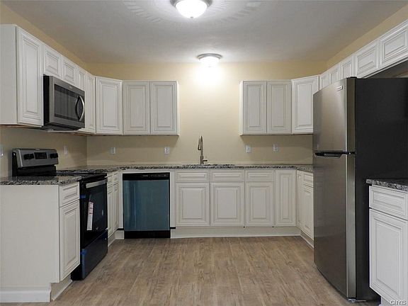 Charming Ranch located in the Baldwinsville School District. Professionally updated with a new roof, vinyl siding and windows. Brand new appliances in the large eat in kitchen with updated cabinets and beautiful granite countertops. All new flooring and paint throughout. Open living concept as the family room flows into the kitchen and into the living room with sliding glass doors leading to a private backyard. Spacious master bedroom with a full bath. 3 bedrooms, a full bath and laundry room complete the home. Brand new HVAC, hot water heater, new electrical and plumbing.