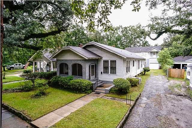 First time available in 50 years on Historic Houston Street! In addition to the main house, there is a 1,200 sq ft apartment with two bedrooms for a total of 2,686 square feet. The main bungalow-style house with 1,486 sq ft has a great floorplan where you will be living large with 3 bedrooms and 2 full baths as well as plenty of options for renovation. Come on into the 17 x 8 screened-in front porch to the living room with historic fireplace and original light fixtures throughout the home. The formal dining room with French doors leads to the retro kitchen, which has access to the screened-in back porch. Each of the three bedrooms has good sized closets; additionally, there is a bonus room/laundry that's 13 x 8 off one of the back bedrooms. The master bedroom has an attached bathroom with shower. Outside there is a bricked courtyard leading to the two story apartment and the yard is partially fenced. The apartment has two large bedrooms and a large bathroom upstairs along with a 16 x 14 living room. There are wonderful original features like historic tongue in groove paneling throughout the apartment, a sturdy and beautiful wooden staircase, and a quaint 16 x 8 kitchen with hardware. In the past, it had been in high demand with USA doctors doing their residency here. There is an amazing amount of space in each room; this apartment could give families extra flex space for family members or as a rental. Historic Houston Street in trendy Midtown has a nice, neighborly social scene of its own, and also there is the Old Dauphinway Historic District homeowners (optional) group that regularly plans events for members. Sellers reserve the heirloom grape vine in the backyard courtyard. Don't miss out on your chance to put YOUR mark on this historic home. Home is sold in "As is Where is" condition. All measurements are approximate and not guaranteed.