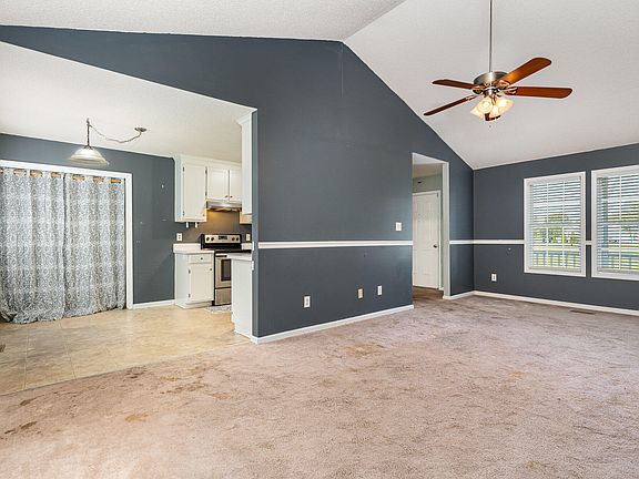 3 bedroom/ 2 bath ranch home on .81 acre.Large family room with cathedral ceilings and fireplace. Kitchen with nook has white cabinets and countertops. Owners suite is nice size with cathedral ceilings. Quiet country living with large front yard. Attached Storage room on back of home. Private back yard. Home needs some cosmetic repairs $3000 flooring allowance. With a little TLC this home would make a great starter home or incredible investment opportunity