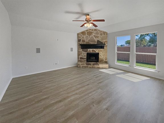 Cozy fireplaceNew flooringCovered patioFenced in backyardNeutral color paint scheme