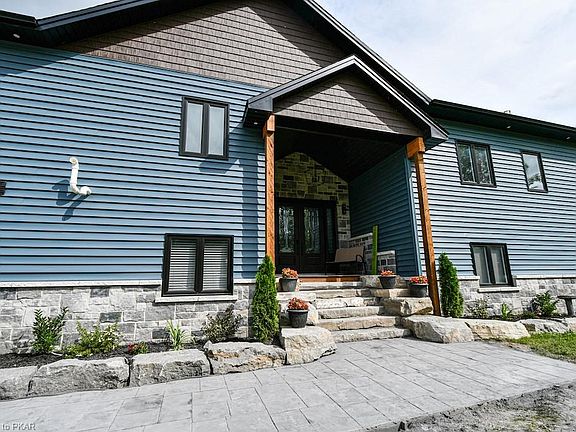 WALK OUT TO THE WATERRONT PORTION IN YOUR BACK YARD. SPECTACULAR ONE 1/2 YEAR OLD CUSTOM BUILT RAISED BUNGALOW FINISHED IN STONE AND SIDING. WATER ACCESS TO RICE LAKE JUST STEPS AWAY WITH DOCKING. THIS SPACIOUS HOME HAS 4,000 SQ FT OF FINISHED LIVING SPACE. MAIN FLOOR FEATURES OPEN CONCEPT, VAULTED CEILINGS, LUTRON LIGHTING, EXTENSIVE POT LIGHTS. GOURMET KITCHEN WITH GRANITE COUNTER TOP AND EATING BAR, HIGH END STAINLESS STEEL APPLIANCES. FLOOR TO CEILING WINDOWS IN GREAT ROOM, STONE WOODBURNING FIREPLACE AND BUILT IN PIZZA OVEN. 3 BEDROOMS, MASTER SUITE WITH GAS STONE FIREPLACE, 5 PC ENSUITE, GLASS AND TILE SHOWER, WALK IN CLOSEST, MAIN FLOOR LAUNDRY, ADDITIONAL 4 PC BATH. LOWER LEVEL BOASTS FAMILY ROOM, GAMES AREA, WALKOUT TO STAMP CONCRETE PATIO AND A CUSTOM GAZEBO, 3 MORE BEDROOMS, 1 4PC BATH. ACCESS TO 2 ½ GARAGE. IN FLOOR RADIANT HEATING. MOVE IN ENJOY THE QUIET COUNTRY LIFESTYLE, BOATING, FISHING, AND THE AMAZING LAKE/WILDLIFE VIEWS OF THIS COUNTRY PROPERTY. MINUTES TO THE VILLAGE OF HASTINGS FOR ALL AMENTIES. 20 MINUTES TO PETERBOROUGH. TRANS CANADA TRAILS NEARBY. THIS HOME HAS SO MUCH TO OFFER FOR THE PERFECT FAMILY. YOU WONT BE DISSAPOINTED.