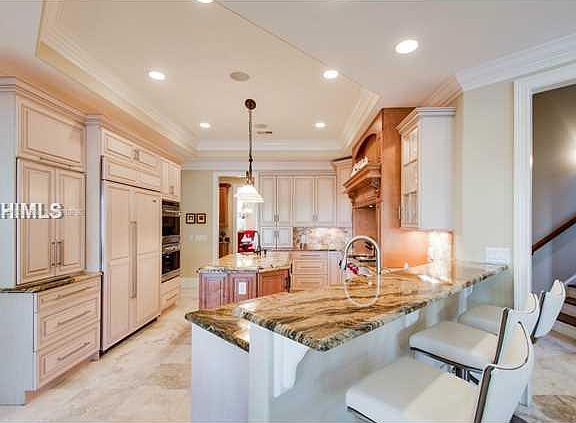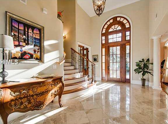 Overlooking majestic oaks with views of the marsh to the Chechessee River, this beautifully appointed Colleton River home boasts 5100 sq/ft of luxurious living space. Custom Built, this home showcases every attention to detail featuring crown molding, soaring ceilings, Travertine and hardwood flooring, Gourmet Kitchen/Family Room with Wolf, Sub Zero, Bosch appliances, coffered ceilings, first floor Master Suite, 3 guest bedrooms with en-suite baths, Living Room, Dining Room, Office, Hobby and Bonus Room, plus 3 car plus golf cart garage. Room for a pool.