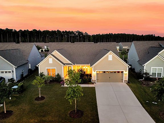 Pristinely-kept Tangerly Oak home featuring 3 bedrooms, 3 full baths, a sunroom, and extended three-bay garage, all on a single level! With many builder upgrades and after-market improvements, this home is truly move-in ready. You'll be warmly welcomed by its inviting curb appeal, with Hardiplank siding and brick accents, a full front porch, and enhanced landscaping. Wide plank laminate wood floors extend throughout all the main living areas. The island kitchen offers quartz countertops, soft closing cabinetry with double tray pull out storage, KitchenAid stainless steel appliances including a five-burner gas cooktop, built-in wall oven & convection microwave, convenient raised dishwasher, and hood vent, arabesque tile backsplash, under & above-cabinet lighting, pendant lights, a spaciouspantry with custom shelving, barstool seating with shiplap backing, and a cozy eat-in breakfast nook. Throughout the home, you'll find craftsman-style trim detailing and crown molding, adding a touch of elegance. The heart of the home includes a large living room with built-in surround sound, an extended area for extra dining or a bar space, and a versatile sunroom. Step outside to find the screened-in porch and adjacent patio space overlooking a privately landscaped backyard and views of an elevated berm and community lagoon. Back inside, the spacious Owner's Suite includes an ensuite bath with 12' x 24" tile floors, double sink granite vanity with custom storage mirrors, walk-in tile shower with built-in bench and frameless shower door, custom built double door linen closet, and large walk-in His & Hers closet. A large guest bedroom, full bath, and Guest Suite with ensuite bath and walk-in closet sit down their own private hallway. The Guest Suite can easily be used as a second master! The laundry room includes built-in cabinetry and a folding counter and a functional drop zone/mud room area directly off the garage has built-in upper and lower cabinets and a sitting bench. Don't miss the garage space - with an epoxy finish and two full spaces plus an extended third bay, it's the perfect place for golf cart parking, a workshop, or extra storage. Be part of the Charleston area's premier 55+ lifestyle community, Del Webb Nexton. Just a golf cart ride away from two grocery stores, restaurants, a wine bar, and the popular Pickle Bar, plus under 10 minutes to historic downtown Summerville and 25 minutes to Charleston, you'll love its convenient location! Del Webb Nexton offers a 27,000 square foot amenities center, a full-time lifestyle director, and a diverse calendar of events. You'll be living your BEST LIFE in this nationally award-winning community!