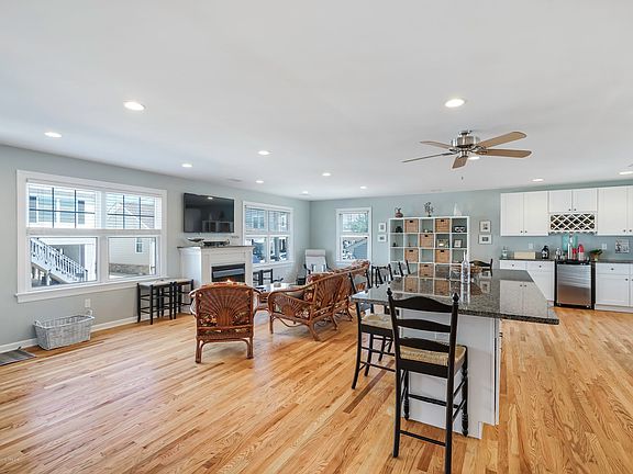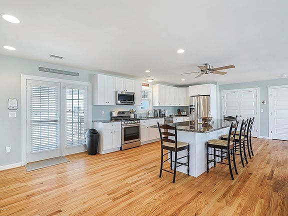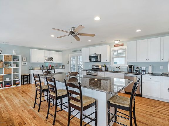 Sunset Manor - Beautiful 4-bedroom, 2.5 bath Shore Colonial ideally situated one block from the beach and bay. Home has an open floor plan design perfect for entertaining. Custom kitchen w/ granite countertops, stainless steel Samsung appliances, & center island opens to bar area w/kegerator & living room w/ gas fireplace. Additional interior features include master bedroom w/ ensuite bathroom, laundry closet, hardwood floors throughout, 2 zone HVAC, & tankless hot water heater. The outside features large covered back deck, backyard w/outside shower, maintenance free exterior, plenty of off-street parking, & storage under the house. Home is FEMA flood compliant & ready for immediate occupancy.