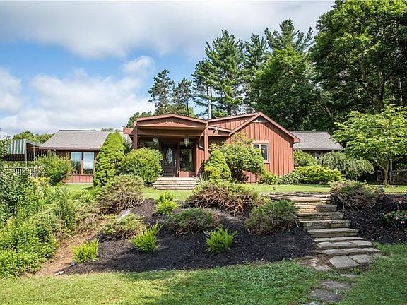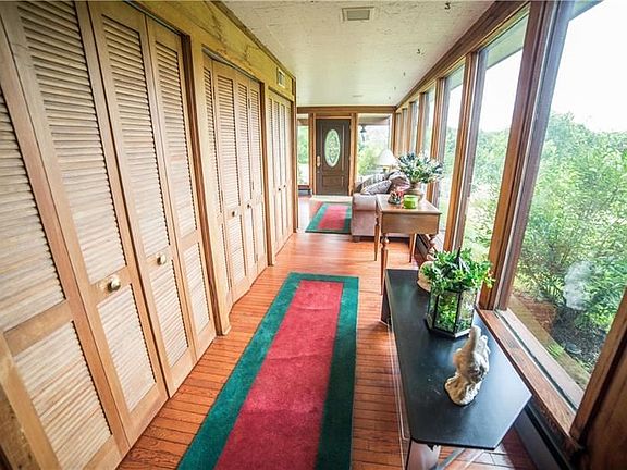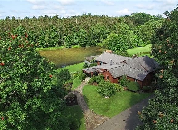 Main home with a huge family room-Many large floor to ceiling windows, skylites, cathedral ceiling 13'6" high, Built in book shelves, 2 stone fireplaces, Office/4th bedroom possible. Updated kitchen with stainless steel appliances. 3 car detached garage- Guest home= Sears model package home of 1940's 3 bedrooms-kitchen-bath and mudroom. possible rental with 3 car garage or possible horse barn. 2 acre lake, some fence.
