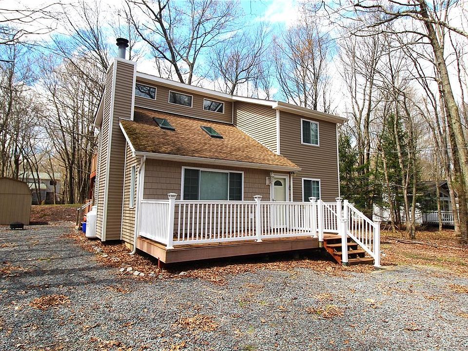 Spacious 3 Bedroom, 2 Bathroom Salt Box located in Towamensing Trails. Features include Ductless Air Conditioning, an open concept Kitchen, Dining Room and Living Room with a stone faced propane fireplace, dedicated room for the jetted tub, first floor Main Bedroom, bright Loft and 3 decks. All this is a community well know for its 190 acre lake, outdoor Pool, Clubhouse with its own Bar and Restaurant!